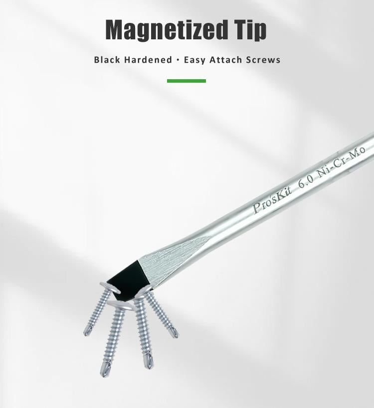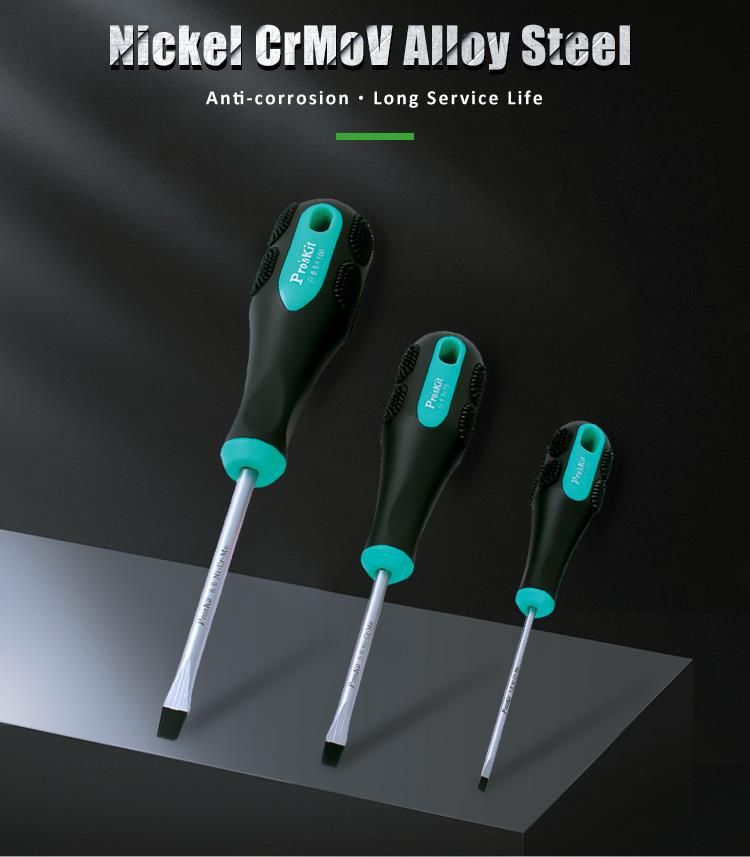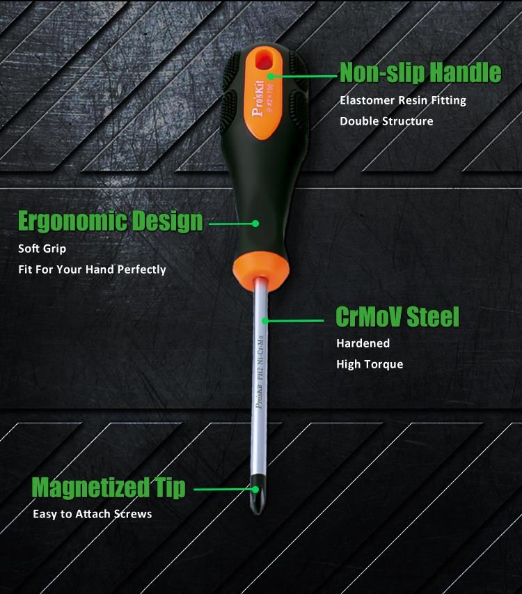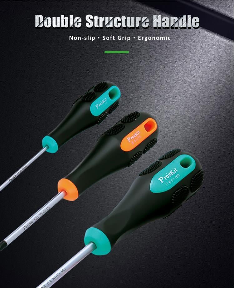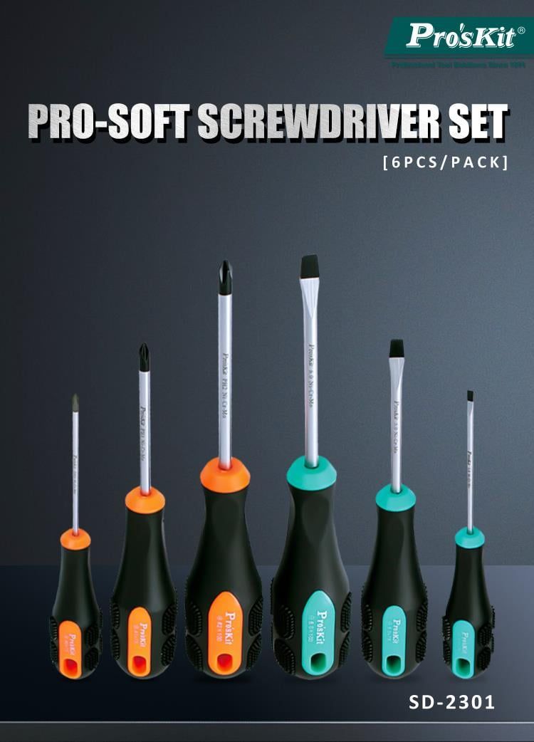 Bộ tua vít Pro’sKit SD-2301 thuộc dòng tua vít cao cấp của Pro’sKit, được thiết kế chuyên dụng cho các kỹ thuật viên, thợ điện, thợ cơ khí và người dùng gia đình. Sản phẩm nổi bật với lưỡi thép hợp kim Cr-Mo-V (Chromium-Molybdenum-Vanadium) – loại thép có độ cứng cao, khả năng chịu lực xoắn lớn và chống mài mòn vượt trội.