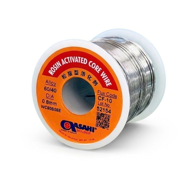 Chì hàn Asahi Sn60Pb40 CF-10 đường kính 0.8mm, trọng lượng 500g là loại thiếc hàn lõi flux cao cấp được sản xuất bởi Singapore Asahi Chemical & Solder Industries. Sản phẩm sử dụng flux CF-10, là dạng rosin hoạt tính (activated rosin) cho khả năng ướt nhanh – lan đều – bám tốt, giúp tăng tốc độ hàn và tạo mối hàn chắc bền, sạch sẽ.