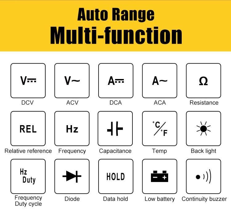 Chuẩn bị: Lắp pin 9V vào ngăn chứa pin phía sau thiết bị. Kết nối dây đo vào các cổng tương ứng trên đồng hồ. Đo điện áp (AC/DC): Chọn thang đo phù hợp bằng cách xoay núm vặn. Kết nối que đo đỏ vào cổng VΩHz và que đo đen vào cổng COM. Đặt que đo vào hai điểm cần đo và đọc kết quả trên màn hình. Đo dòng điện (AC/DC): Chọn thang đo dòng điện phù hợp. Kết nối que đo đỏ vào cổng 10A (nếu đo dòng lớn) hoặc VΩHz (nếu đo dòng nhỏ), que đo đen vào cổng COM. Đặt que đo vào mạch và đọc kết quả. Đo điện trở, tụ điện, tần số: Chọn chức năng đo tương ứng. Kết nối que đo vào hai đầu của linh kiện và đọc giá trị trên màn hình. Đo nhiệt độ: Kết nối đầu dò nhiệt độ K-type vào cổng đo. Chọn chức năng đo nhiệt độ và đọc kết quả trên màn hình. Phát hiện điện áp không tiếp xúc (NCV): Chọn chức năng NCV. Đưa đầu thiết bị gần nguồn điện cần kiểm tra; thiết bị sẽ phát tín hiệu khi phát hiện điện áp. Sử dụng các chức năng bổ sung: Nhấn nút "Hold" để giữ giá trị hiện tại trên màn hình. Nhấn nút "REL" để đo giá trị tương đối. Nhấn nút đèn nền để bật/tắt ánh sáng màn hình. Bảo quản: Sau khi sử dụng, tắt thiết bị và tháo pin nếu không sử dụng trong thời gian dài. Bảo quản thiết bị ở nơi khô ráo, tránh nhiệt độ và độ ẩm cao.