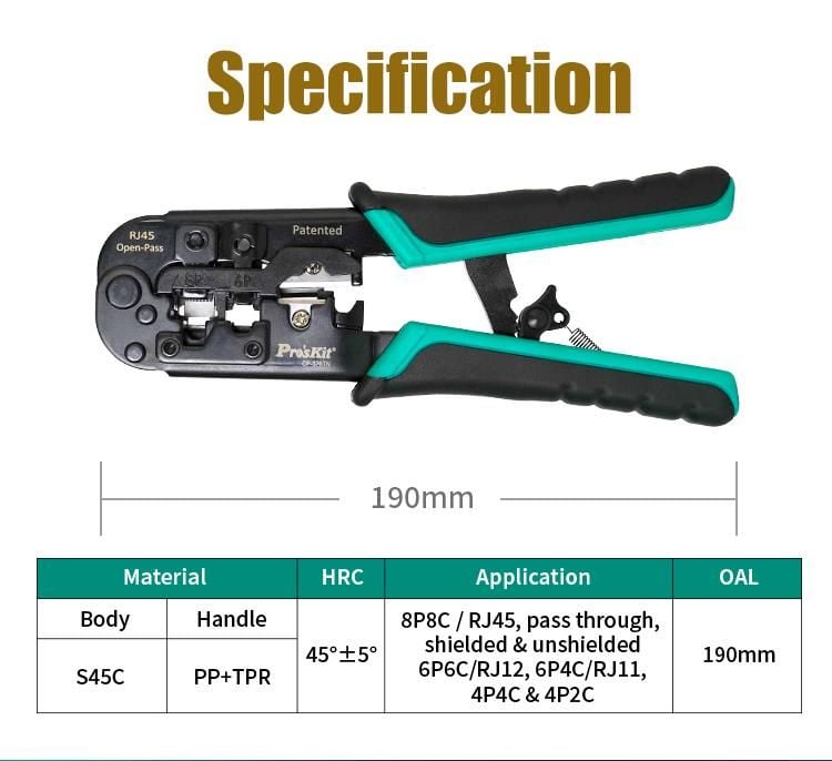 Kềm bấm mạng xuyên thấu Pro'skit CP-376TN (CAT5/6)