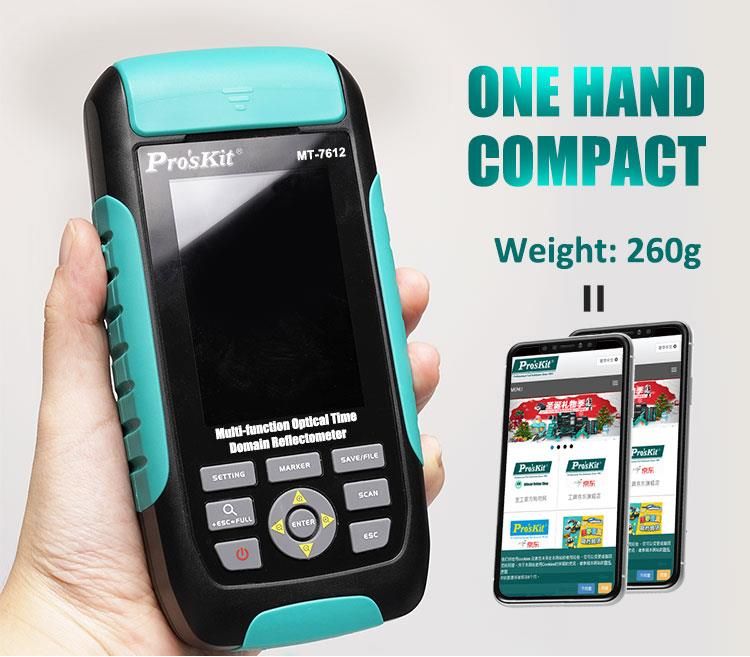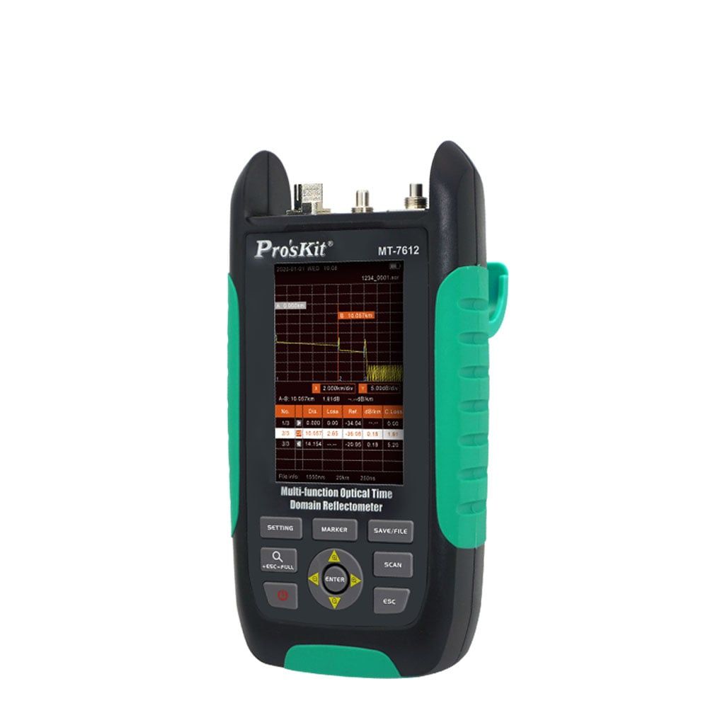 Pro’sKit MT-7612F là thiết bị kiểm tra sợi quang cầm tay, tích hợp nhiều chức năng cần thiết trong công tác lắp đặt, bảo trì và chẩn đoán hệ thống mạng quang: OTDR (máy đo phản xạ miền thời gian quang), OPM (đồng hồ đo công suất quang), OLS (nguồn sáng quang) và VFL (bút dò lỗi quang).