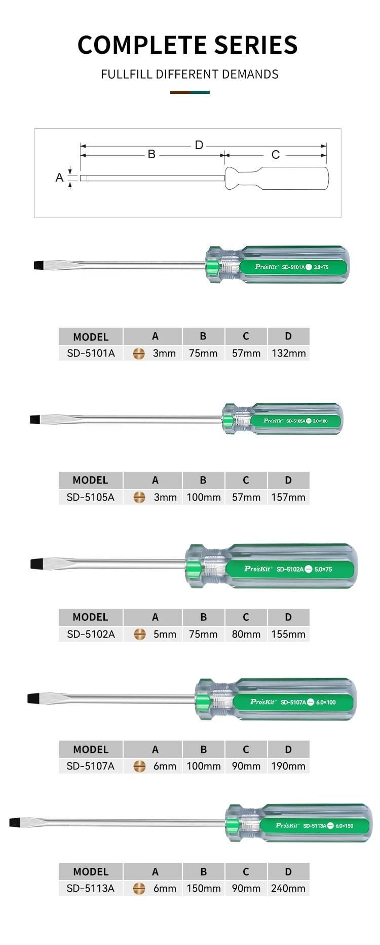 Tua vít dẹp Pro'skit SD-5113A (Slotted 6.0 x 150mm)